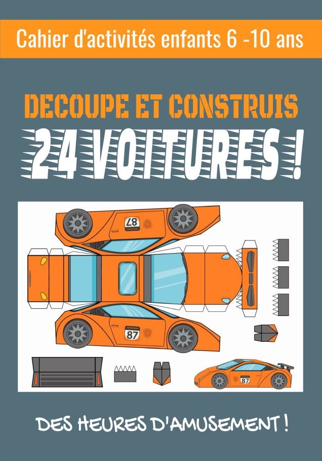 - 24 véhicules à découper et à monter (8 modèles déclinés en 3 couleurs différentes)